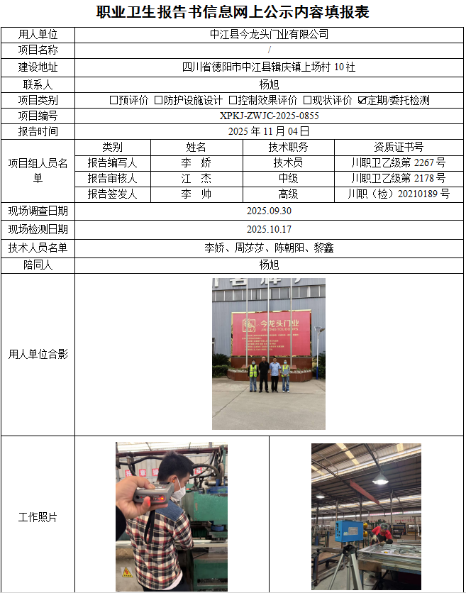 四川鑫锦程科技发展有限公司职业病危害定期检测