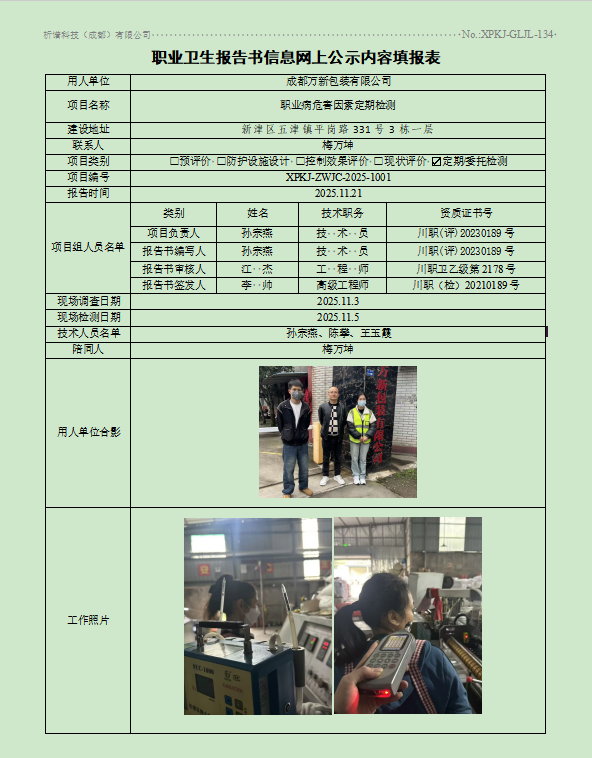 广汉华瑞石油机械制造有限公司职业病危害定期检测