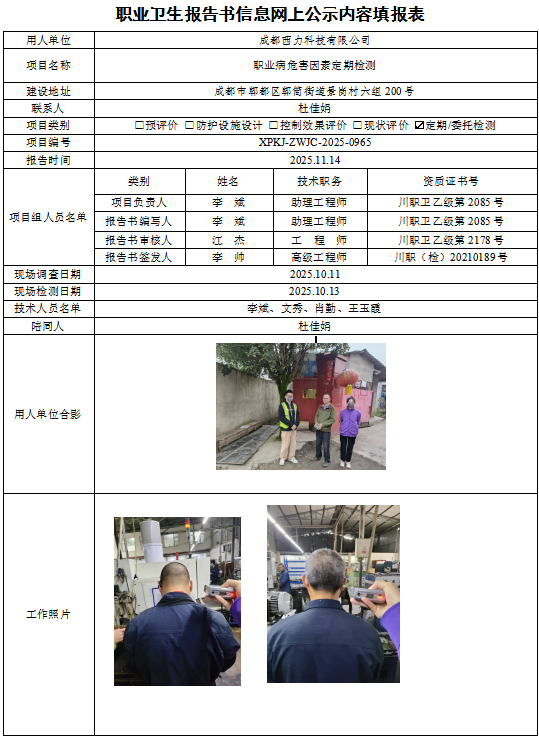 成都鑫雨跃鞋业有限责任公司职业病危害定期检测
