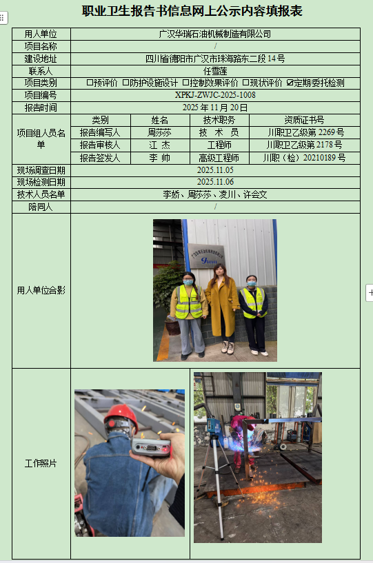 广汉华瑞石油机械制造有限公司职业病危害定期检测