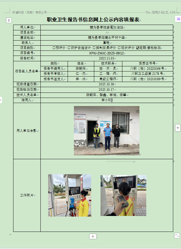 峨眉山西贝石油销售有限公司顺江加油站职业病危害定期检测