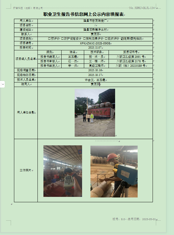 隆昌市宏茂陶瓷厂职业病危害定期检测