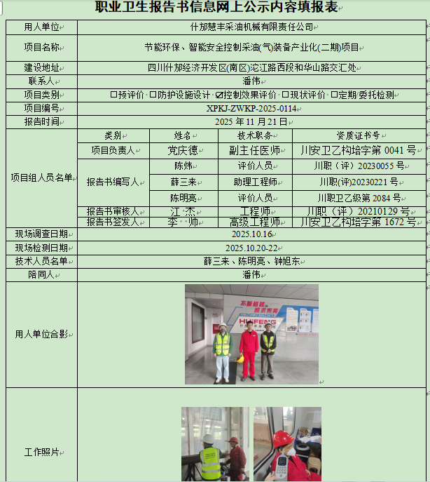 什邡慧丰采油机械有限责任公司职业病危害控制效果评价