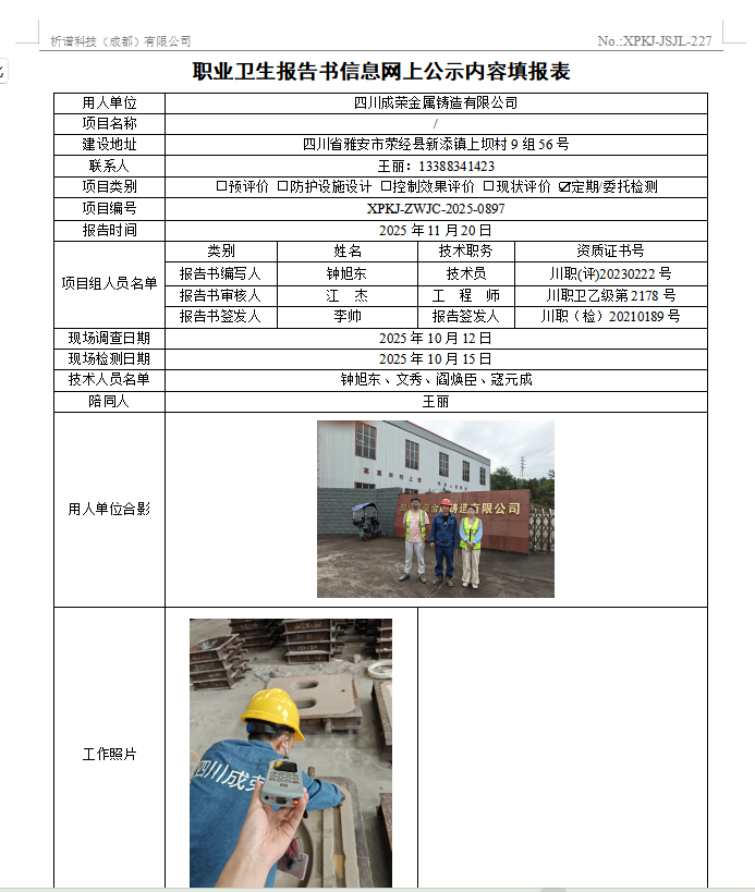 四川省广汉市益森胶合板有限公司职业病危害定期检测