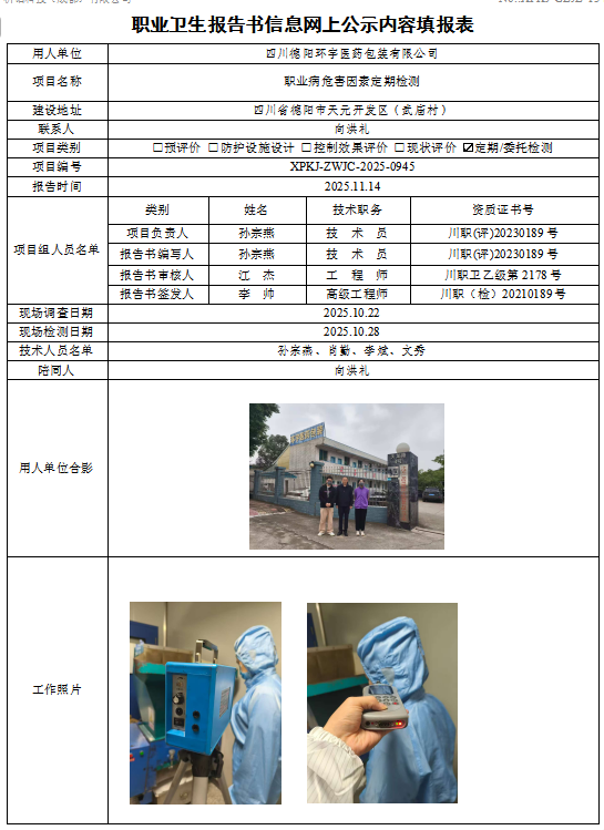 四川德阳环宇医药包装有限公司职业病危害定期检测