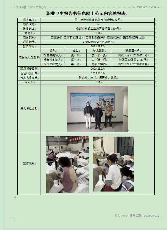 四川能投川化望化科技有限责任公司职业病危害定期检测