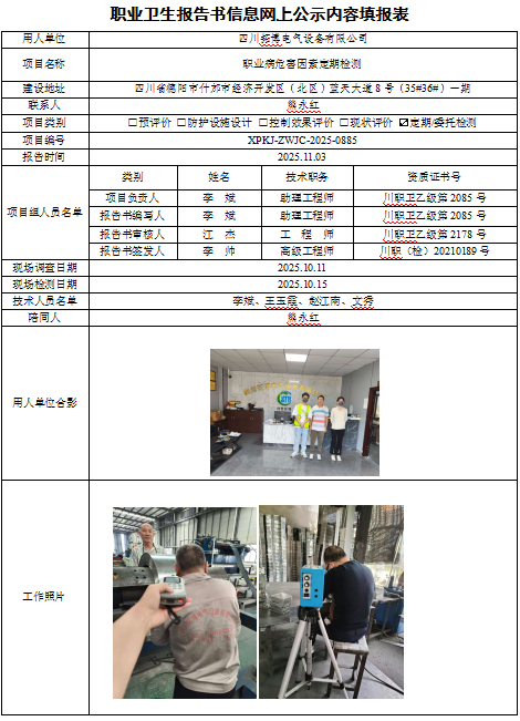 四川拓博电气设备有限公司职业病危害定期检测