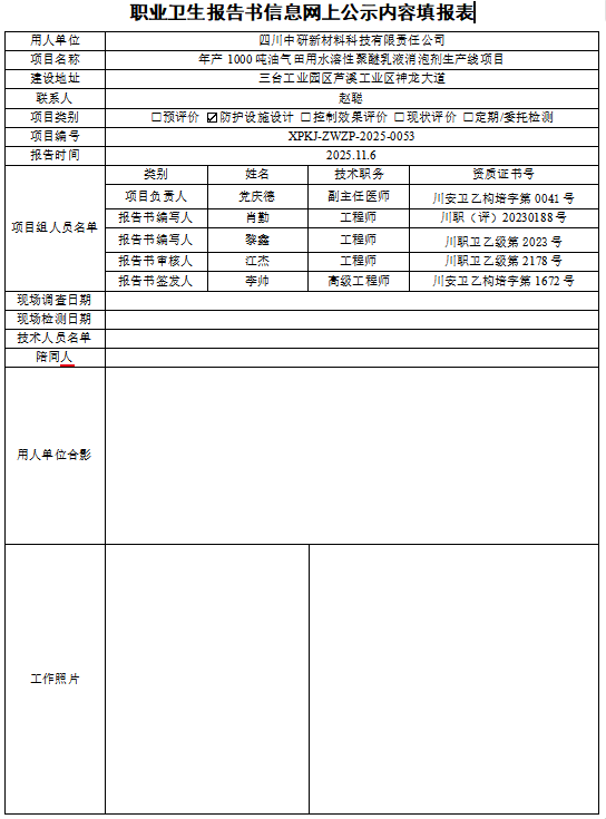 四川中研新材料科技有限公司职业病危害防护设施设计专篇