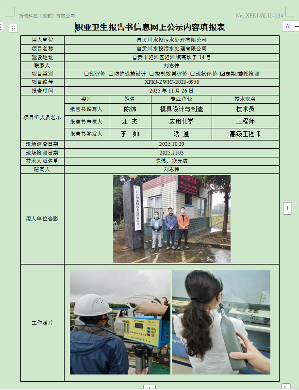 达州市正宏储能材料科技有限公司职业病危害因素定期检测