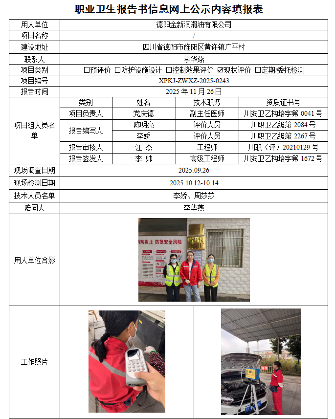四川芯益电子材料有限公司职业病危害因素定期检测