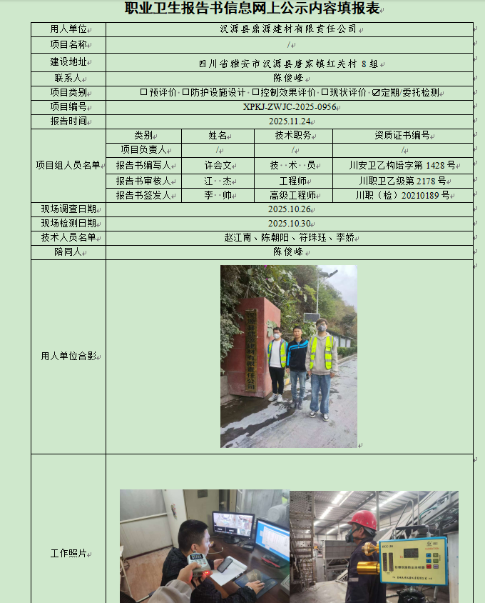 汉源县鼎源建材有限责任公司职业病危害因素定期检测