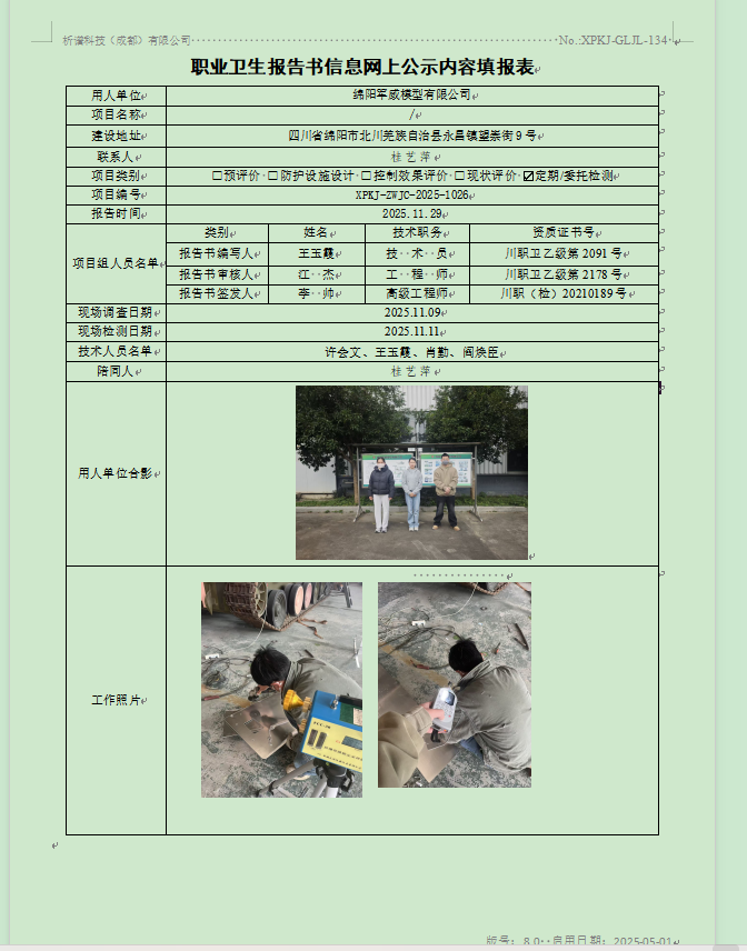 绵阳创明智能电池有限责任公司职业病危害控制效果评价