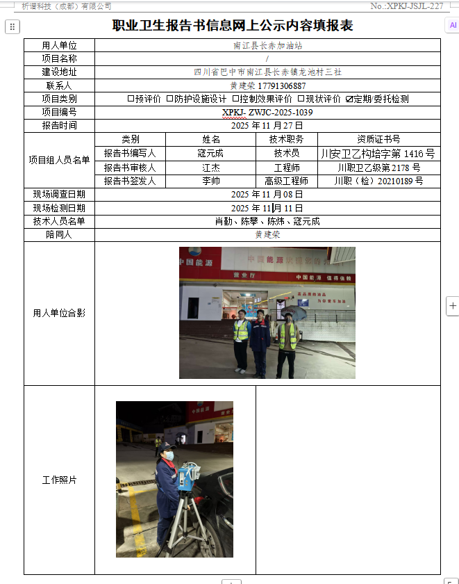 泸州市龙马潭区三塘酒厂职业病危害因素定期检测