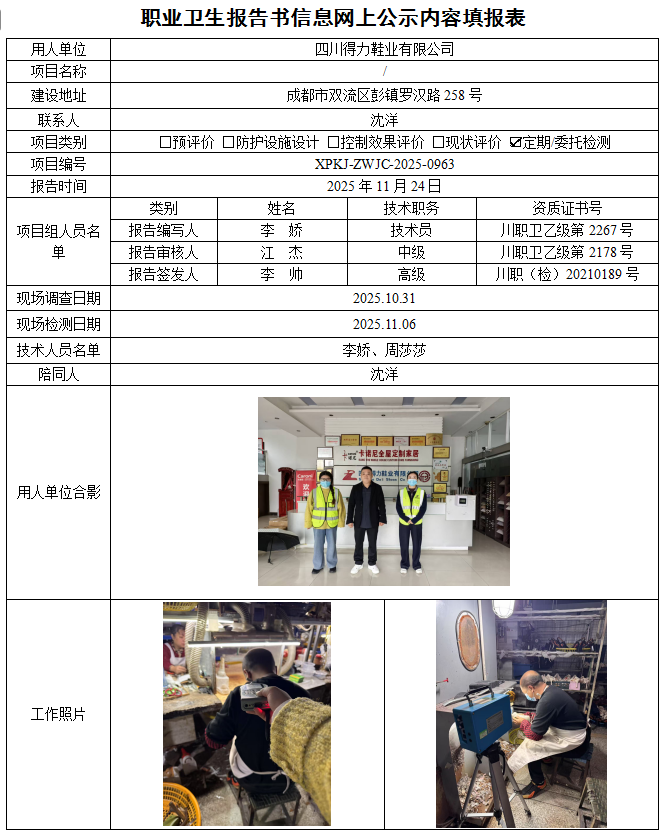 四川鼎石汉投发展有限责任公司职业病危害因素定期检测