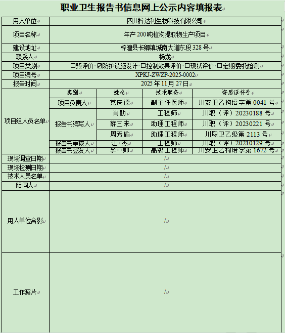 四川梓达利生物科技有限公司职业病危害防护设施设计专篇
