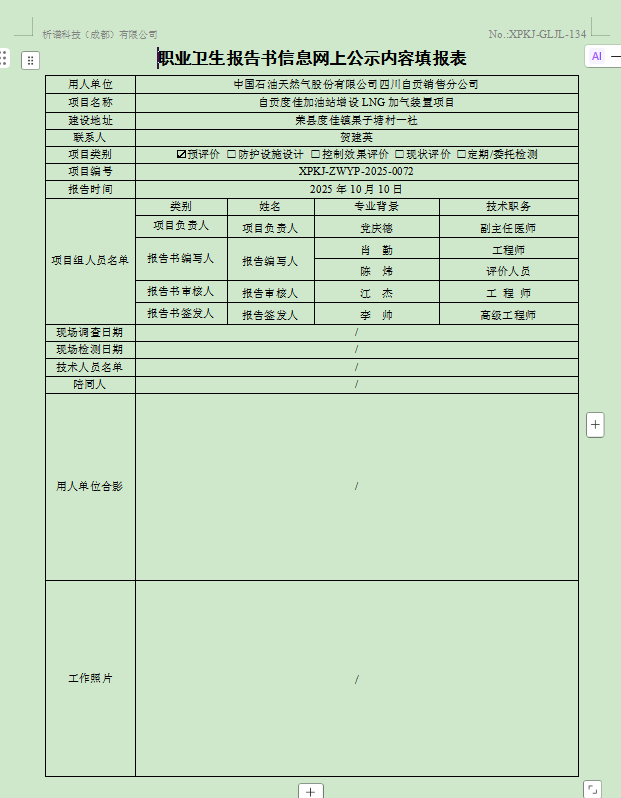 中国石油天然气股份有限公司四川自贡销售分公司职业病危害预评价