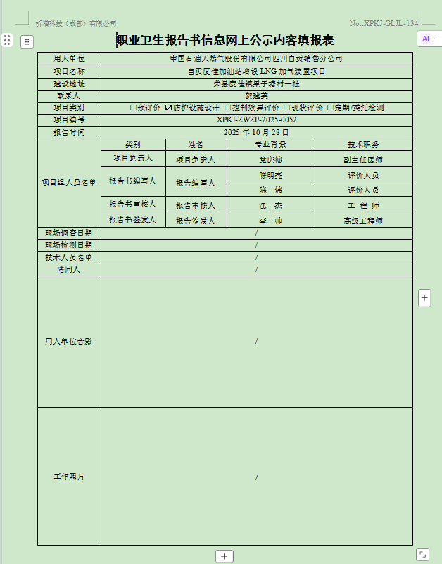 四川普惠达新材料科技有限公司职业病危害因素定期检测