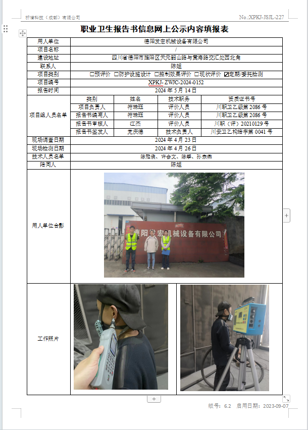 成都威仕达新材料科技有限公司职业病危害防护设施专篇