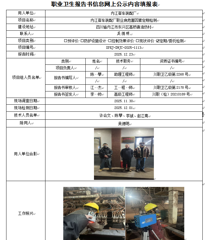 南充隆固机械工业有限公司职业病危害因素定期检测