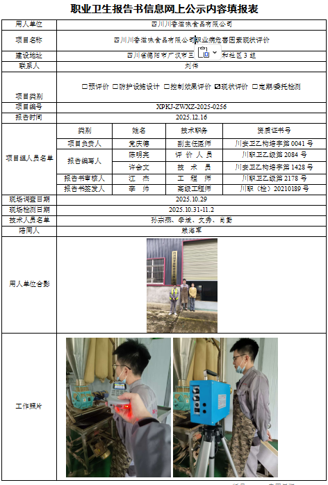 四川川香滋味食品有限公司职业病危害现状评价