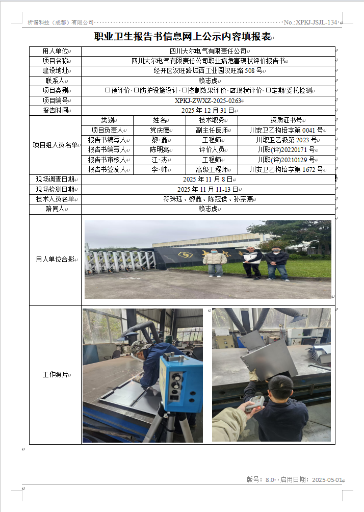 四川阿帕克生物科技有限公司职业病危害控制效果评价