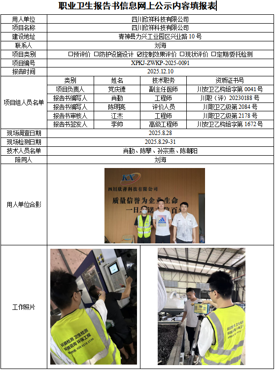 成都兰博森工装饰材料有限公司职业病危害因素定期检测