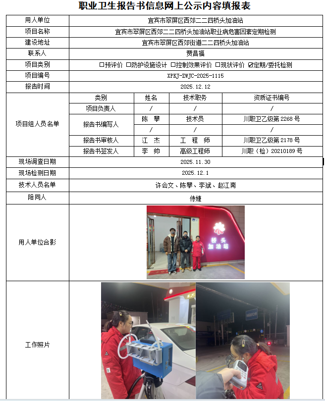 宜宾市翠屏区西郊二二四桥头加油站职业病危害因素定期检测
