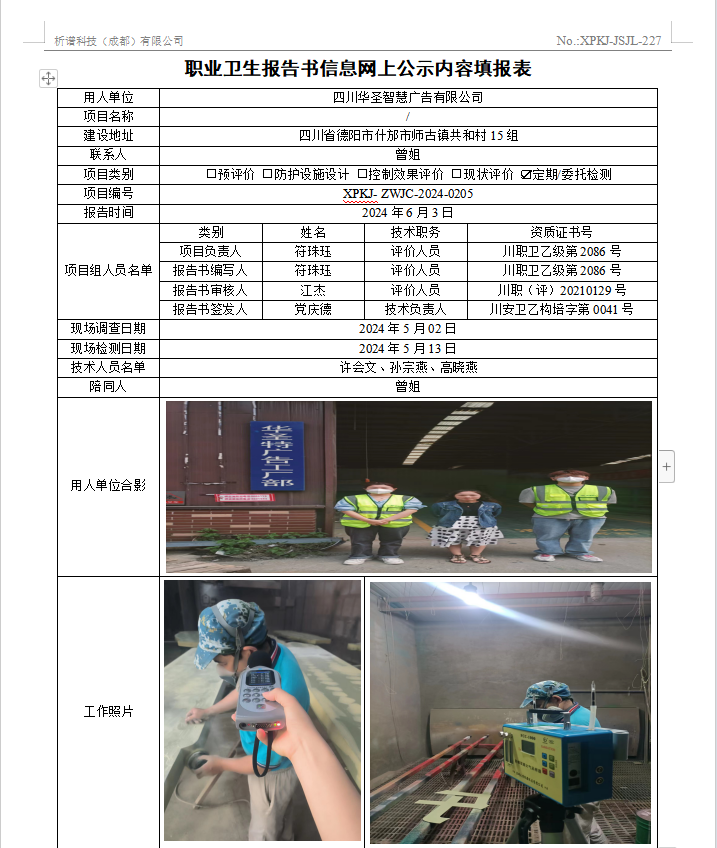 四川华圣智慧广告有限公司定期检测