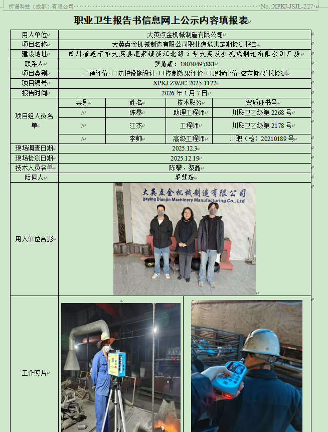 大英点金机械制造有限公司职业病危害因素定期检测