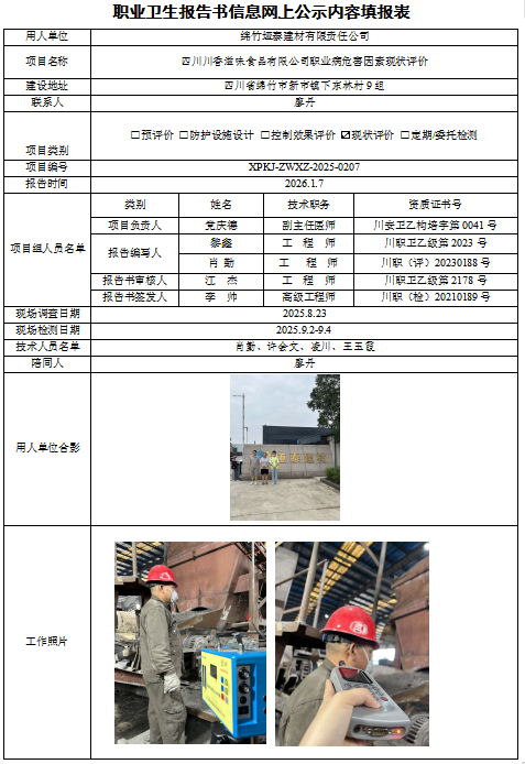 绵竹垭泰建材有限责任公司职业病危害现状评价