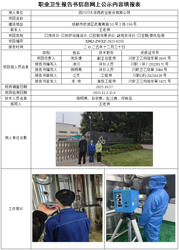 成都吉豪汽车部件有限公司职业病危害现状评价