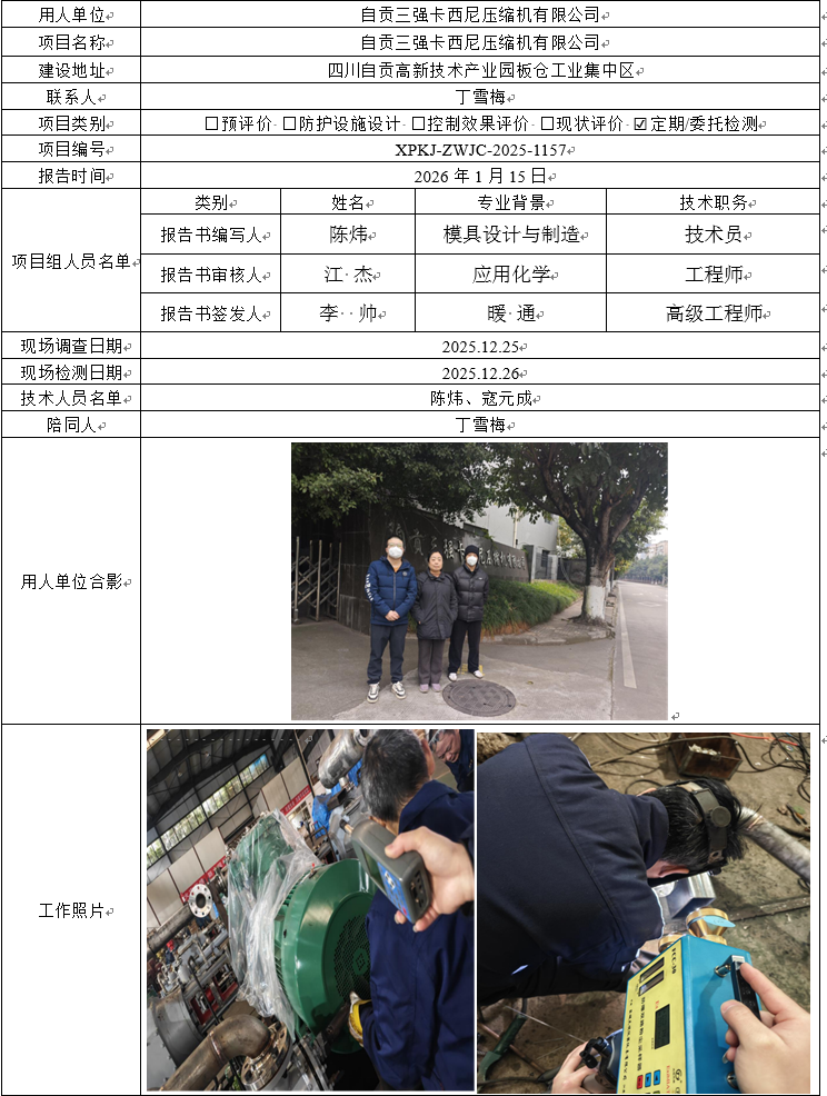 自贡三强卡西尼压缩机有限公司职业病危害因素定期检测