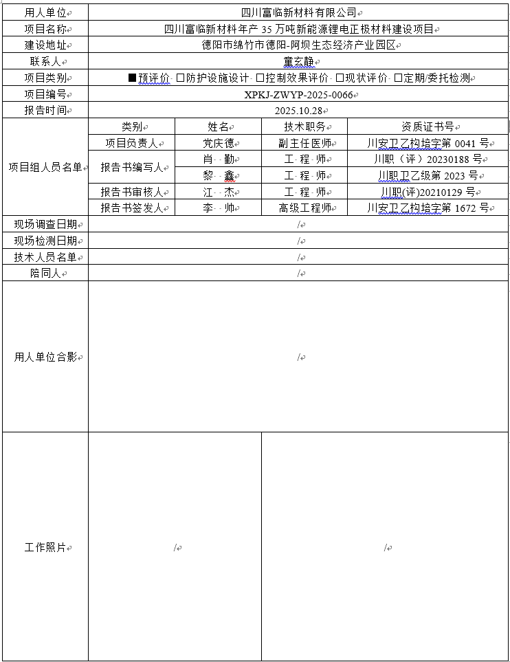 四川富临新材料有限公司职业病危害预评价