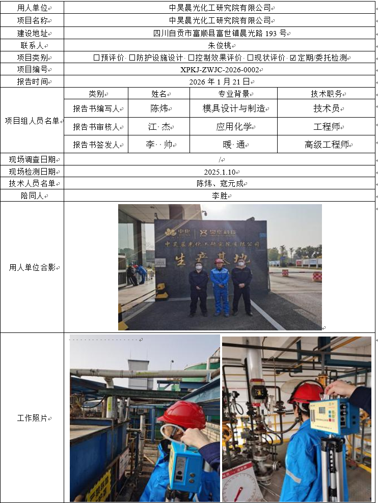 中昊晨光化工研究院有限公司职业病危害因素定期检测