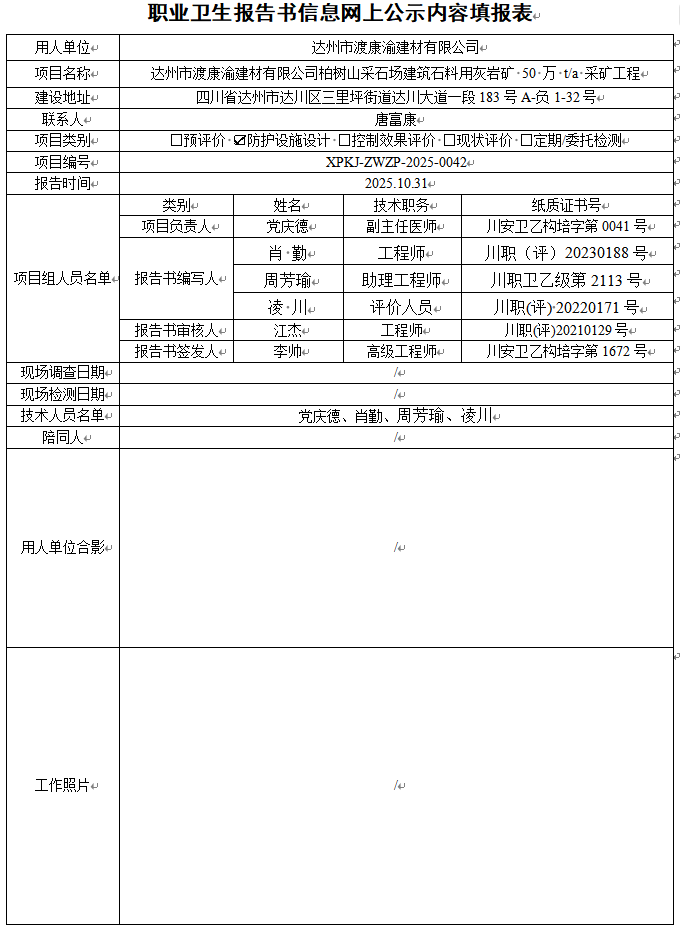 达州市渡康渝建材有限公司职业病防护设施设计