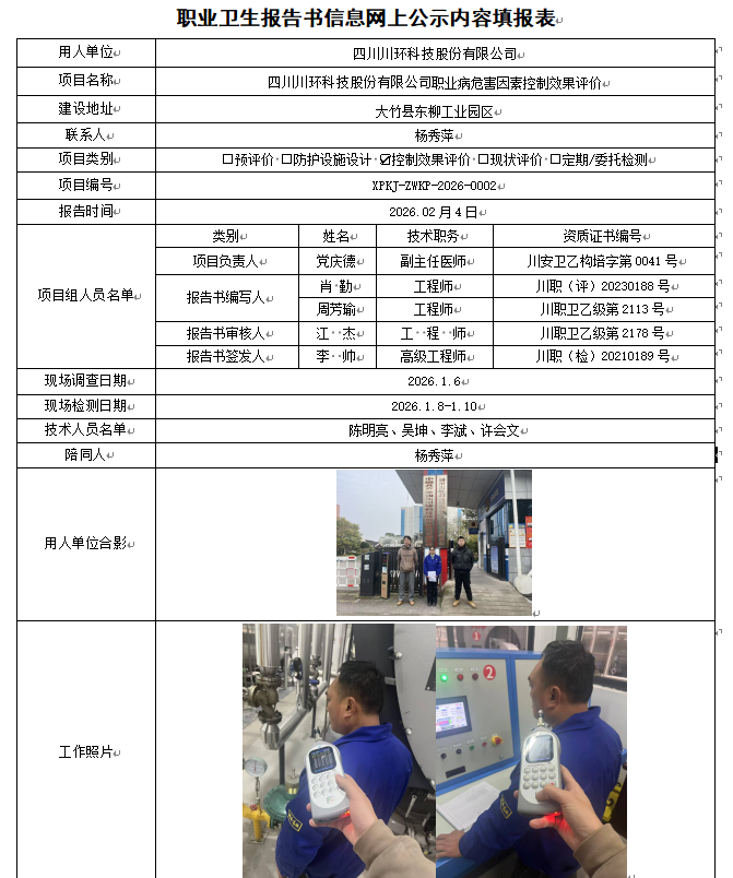 四川川环科技股份有限公司职业病危害控制效果评价