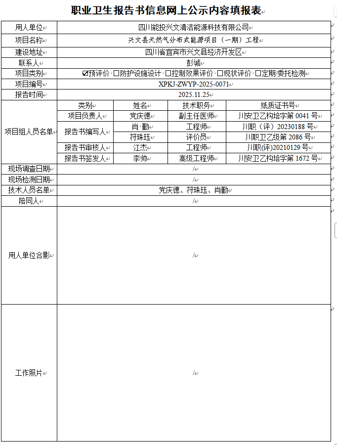 四川能投兴文清洁能源科技有限公司职业病危害预评价