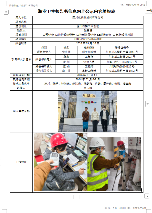 四川亿欣新材料有限公司职业病危害现状评价