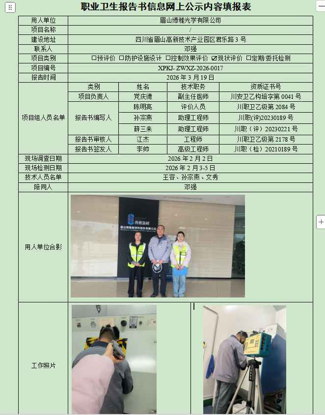 四川中德旌焜电线电缆有限公司职业病危害因素定期检测