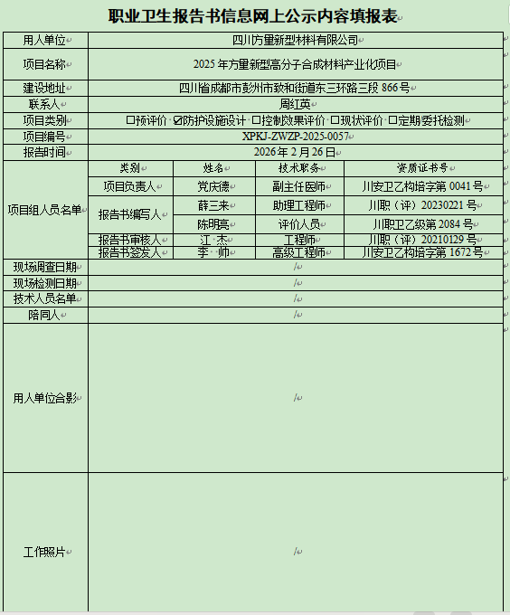 四川方量新型材料有限公司职业病防护设施设计
