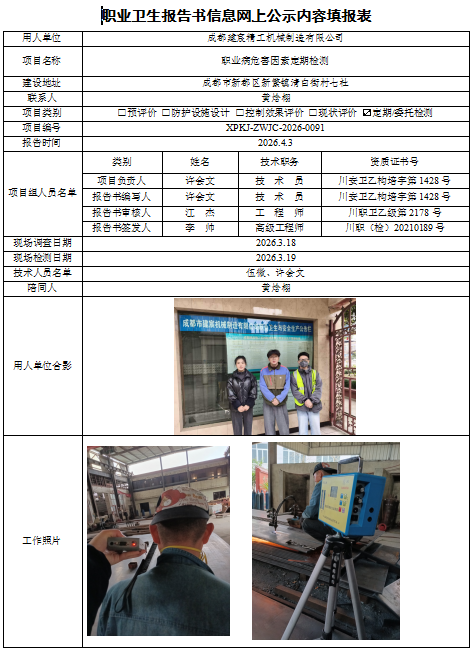 成都建宸精工机械制造有限公司职业病危害因素定期检测