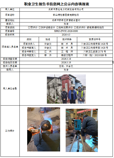 成都建宸精工机械制造有限公司职业病危害因素定期检测