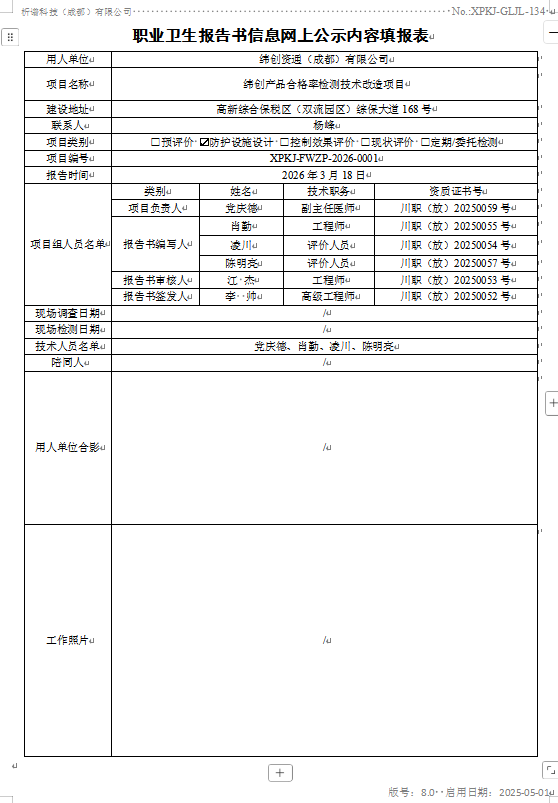眉山博雅光学有限公司职业病危害现状评价