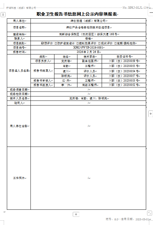 纬创资通(成都)有限公司放射性职业病危害预评价