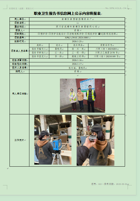 新都区新繁镇园雅家具厂职业病危害因素定期检测