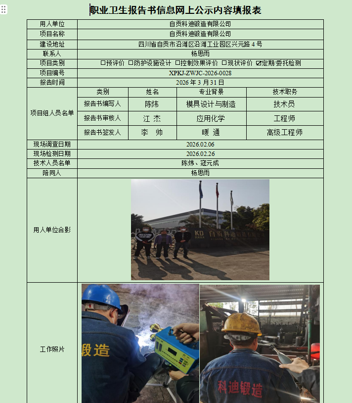 自贡科迪锻造有限公司职业病危害因素定期检测