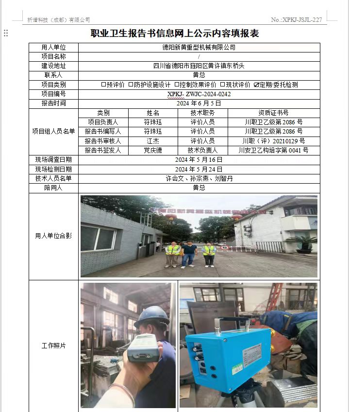 德阳新黄重型机械有限公司定期检测