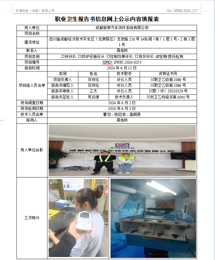 德阳市凯州环保新材料有限公司职业病危害因素定期检测