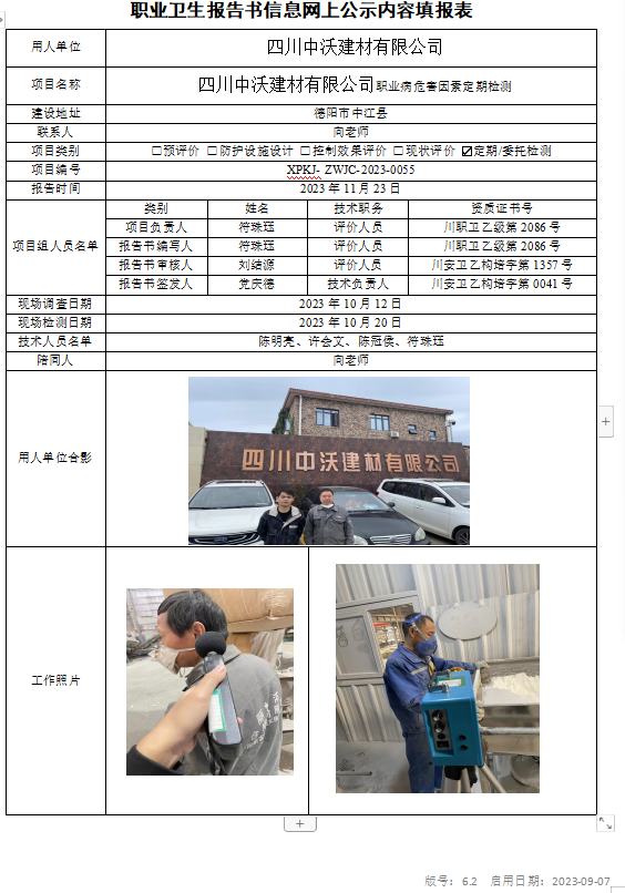 四川佳晟业家具有限公司职业病危害因素定期检测