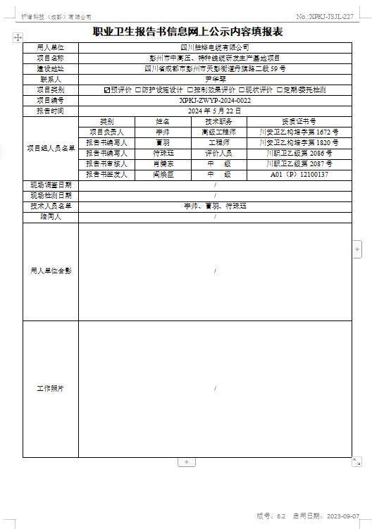 成都市贞观盛光电子科技有限公司职业病危害因素定期检测